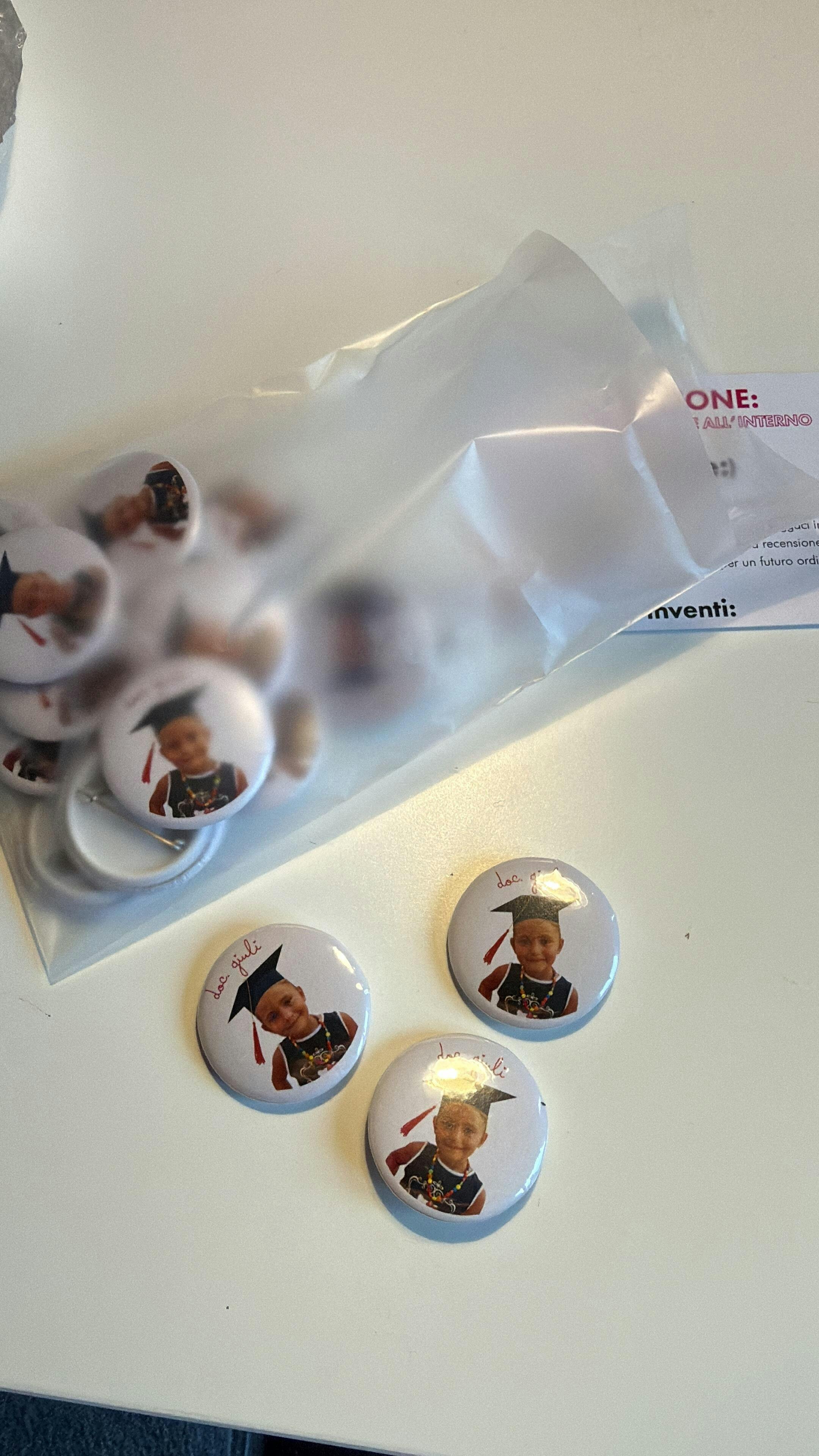 G.D.S. Ho acquistato queste spille per la laurea di mia sorella e sono state perfette. Sono andate a ruba sia nella versione grande che nella piccola dove ho scritto una parola che lei ripete spesso!